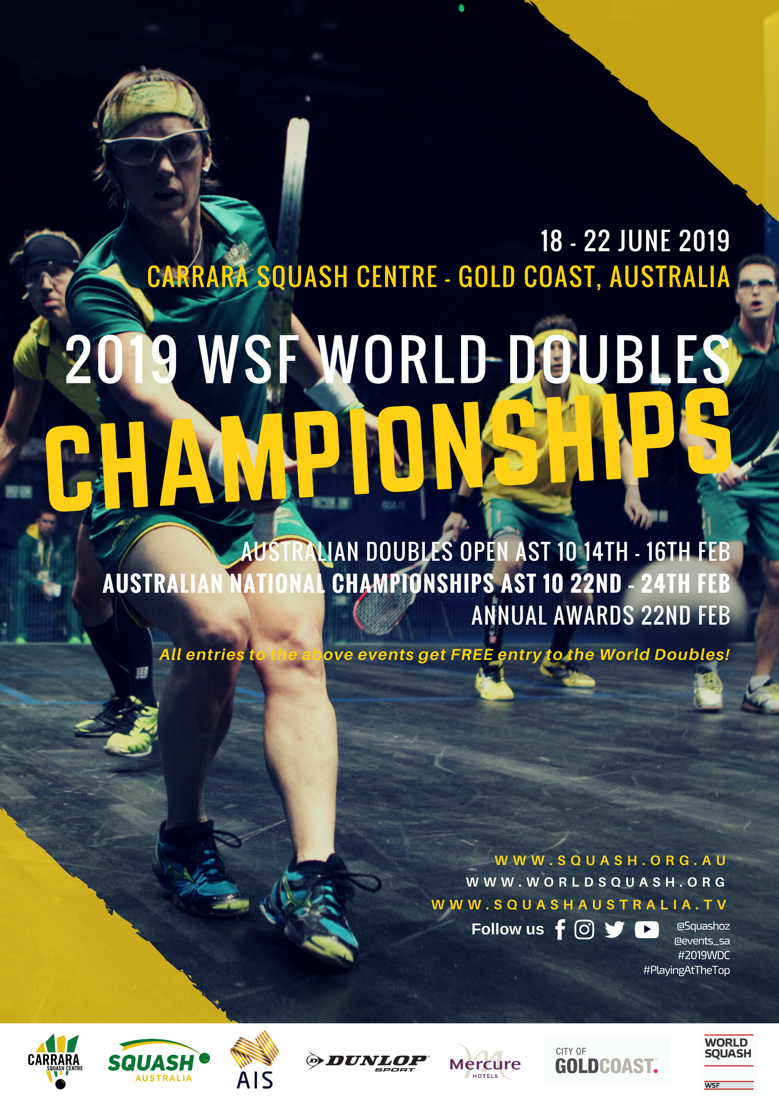 Squash Australia acknowledges the support of the following sponsors and partners for the staging of the 2019 World Doubles Championships: